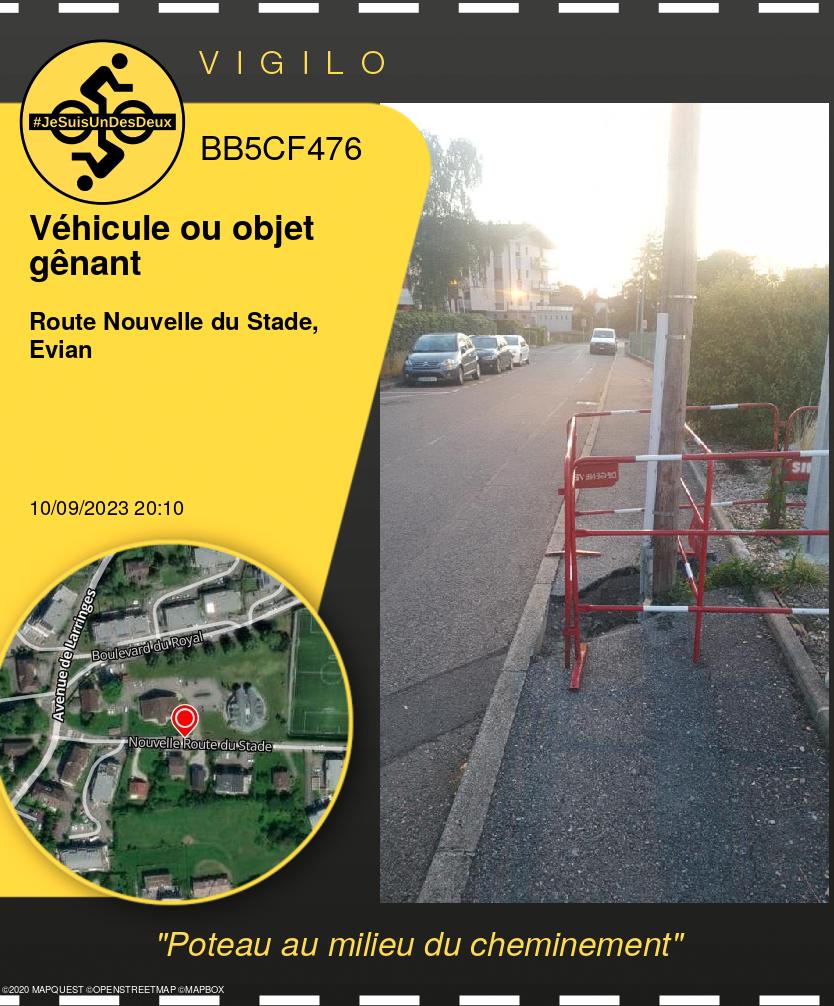 | Route Nouvelle du Stade, Évian-les-Bains | Poteau au milieu du cheminement | Photo - Observations similaires |