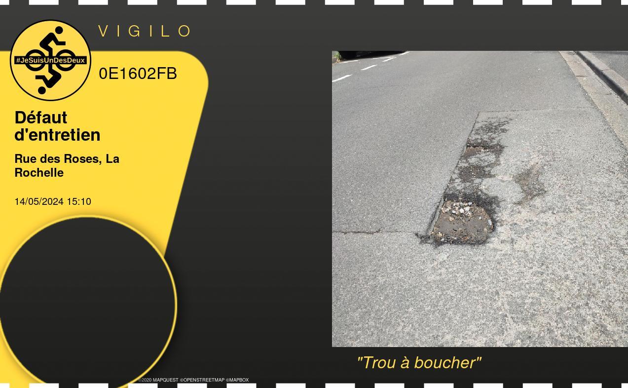 | Rue des Roses, La Rochelle | Trou à boucher | Photo - Observations similaires |