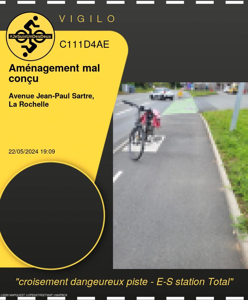 | Avenue Jean-Paul Sartre, La Rochelle | croisement dangeureux piste - E/S station Total | Photo - Observations similaires |