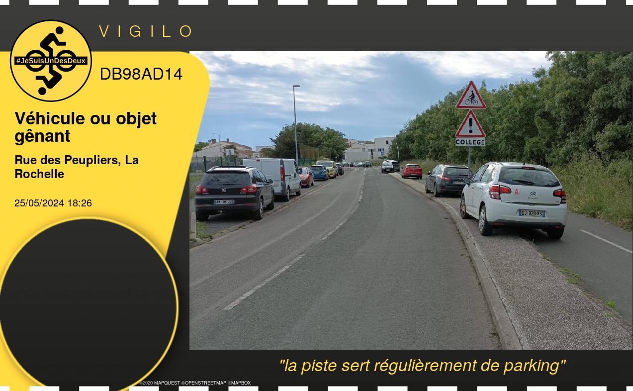 | Rue des Peupliers, La Rochelle | la piste sert régulièrement de parking | Photo - Observations similaires |