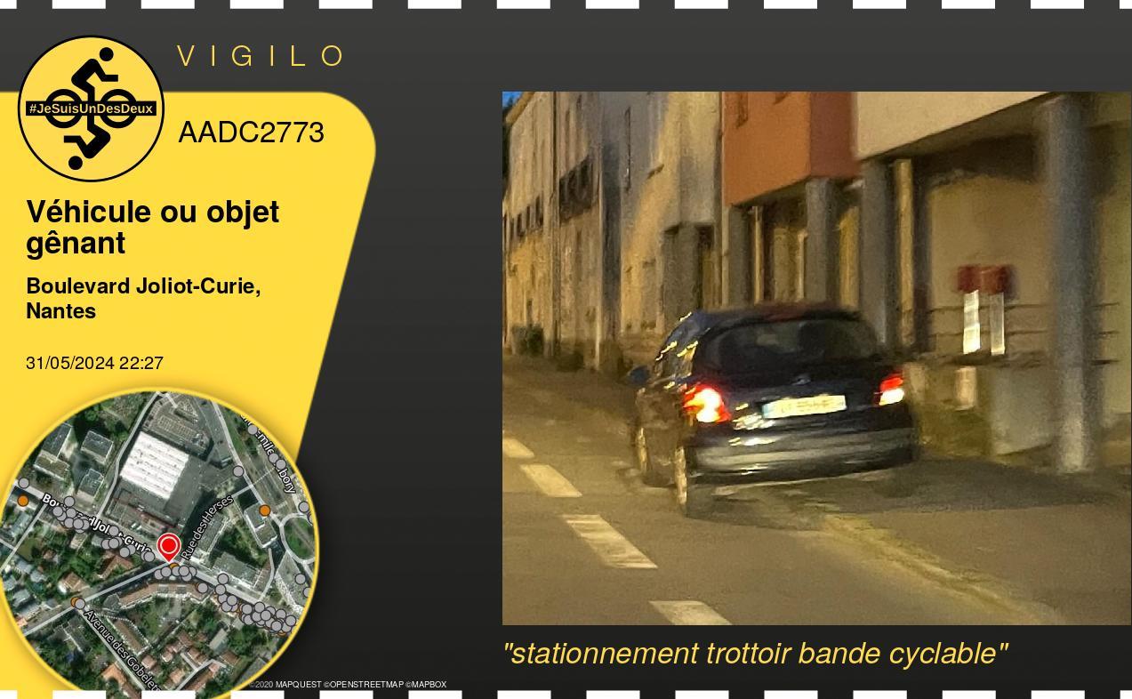 | Boulevard Joliot-Curie, Nantes | stationnement trottoir bande cyclable | Photo - Observations similaires |