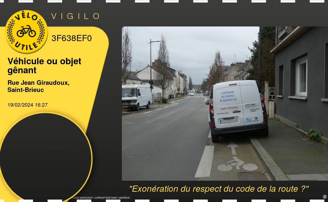 | Rue Jean Giraudoux, Saint-Brieuc | Exonération du respect du code de la route ? | Photo - Observations similaires |