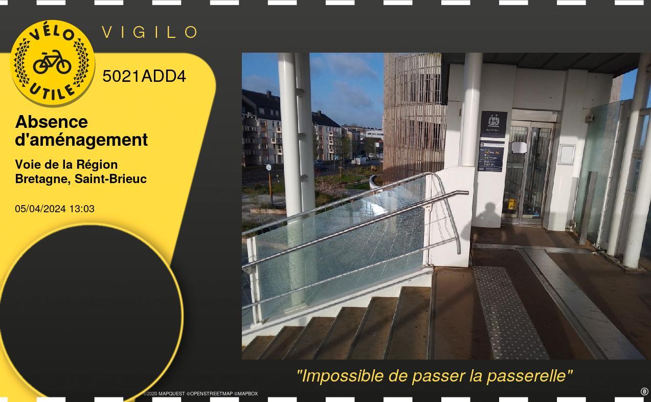 | Voie de la Région Bretagne, Saint-Brieuc | Impossible de passer la passerelle | Photo - Observations similaires |