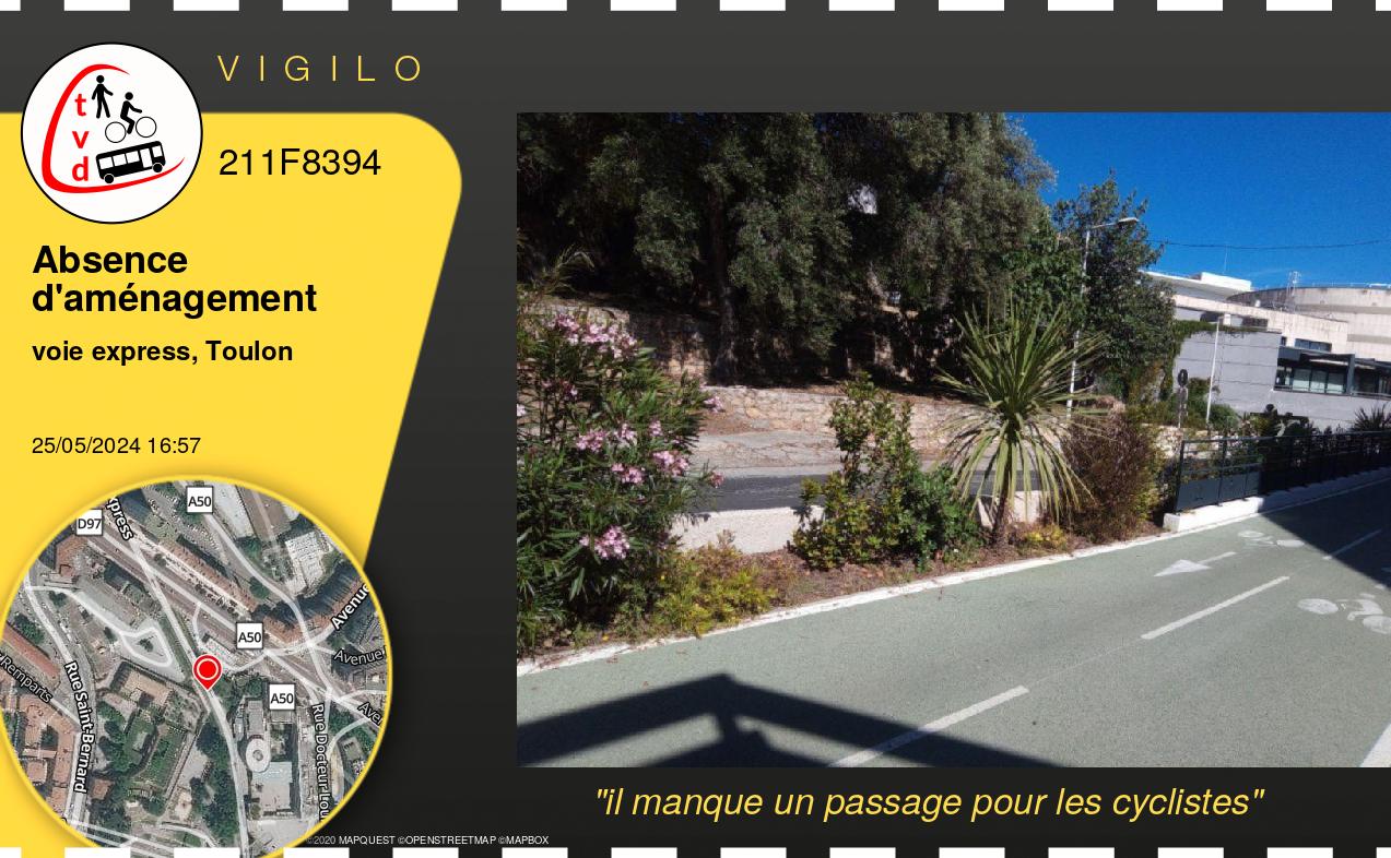| voie express, Toulon | il manque un passage pour les cyclistes | Photo - Observations similaires |