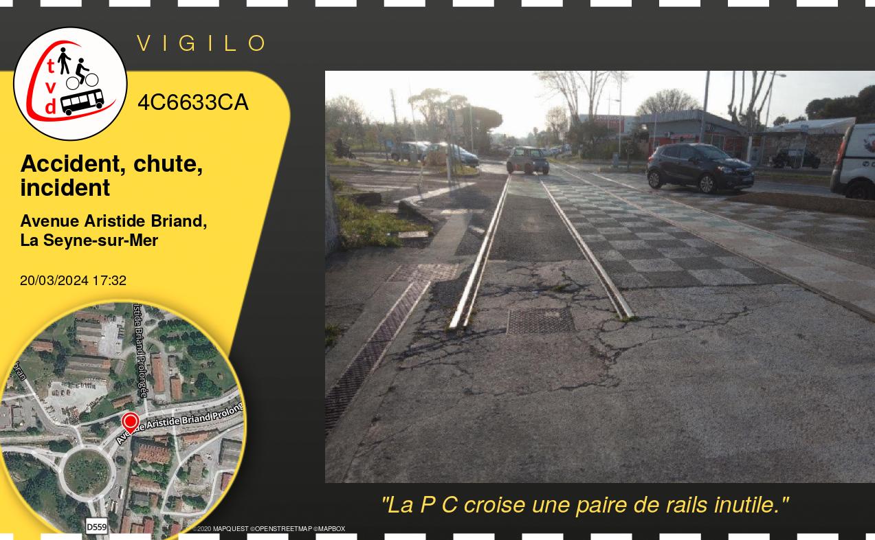 | Avenue Aristide Briand, La Seyne-sur-Mer | La P C croise une paire de rails inutile. | Photo - Observations similaires |