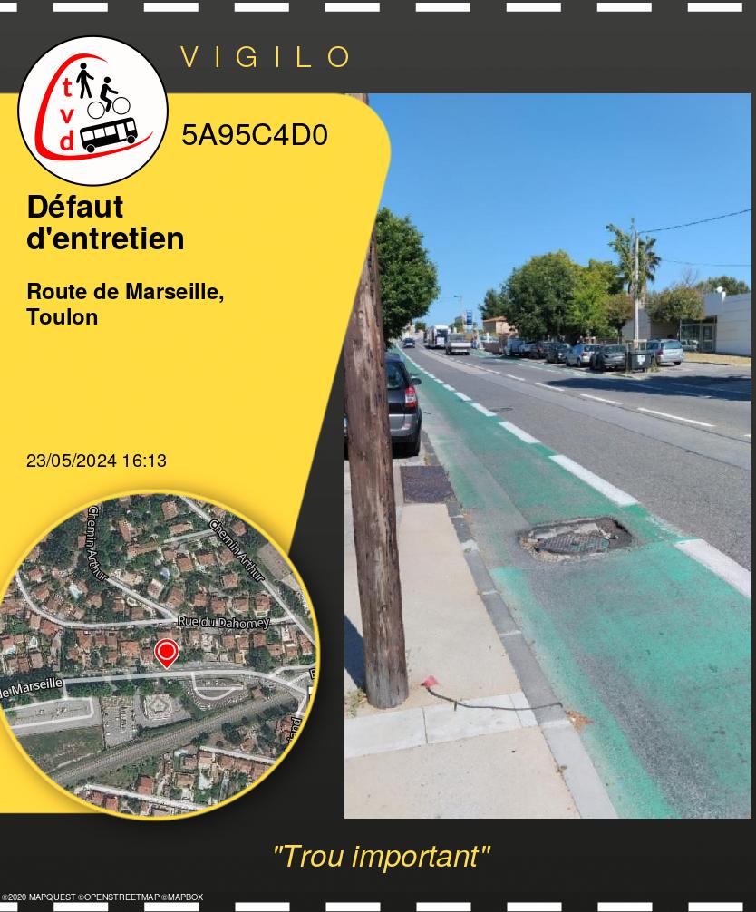 | Route de Marseille, Toulon | Trou important | Photo - Observations similaires |