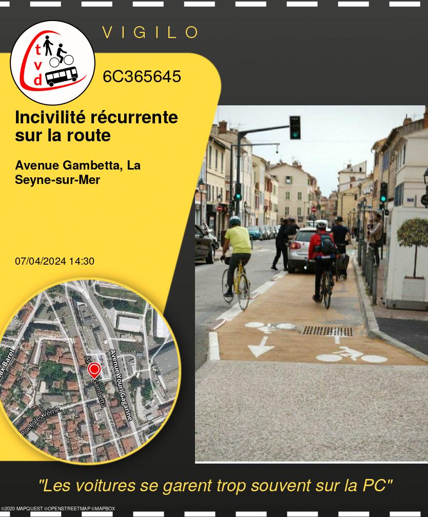| Avenue Gambetta, La Seyne-sur-Mer | Les voitures se garent trop souvent sur la PC | Photo - Observations similaires |