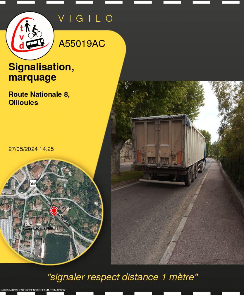 | Route Nationale 8, Ollioules | signaler respect distance 1 mètre | Photo - Observations similaires |