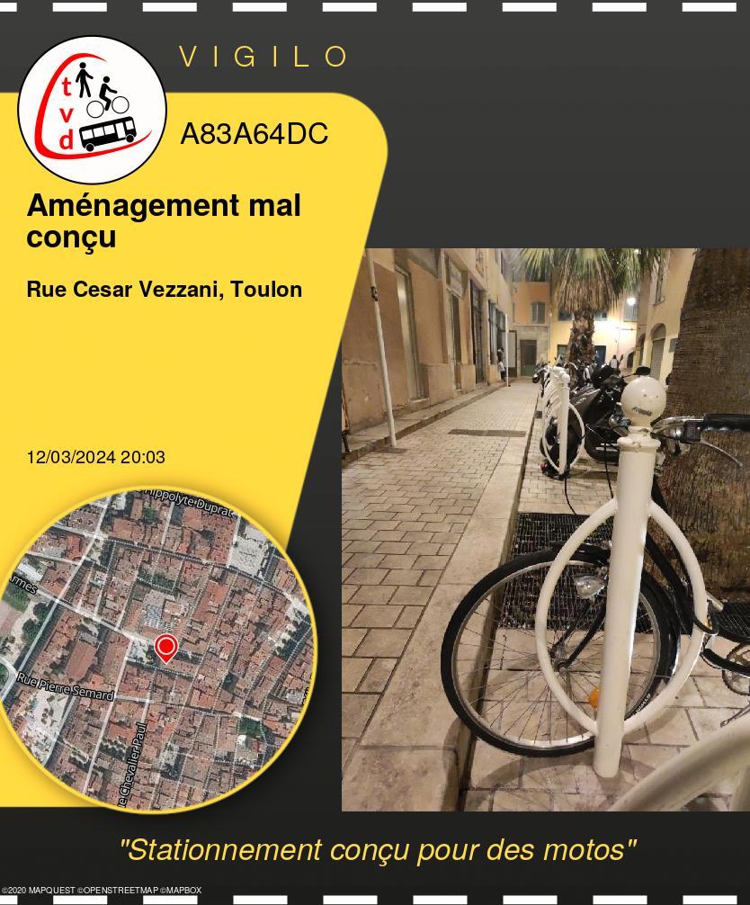 | Rue Cesar Vezzani, Toulon | Stationnement conçu pour des motos | Photo - Observations similaires |