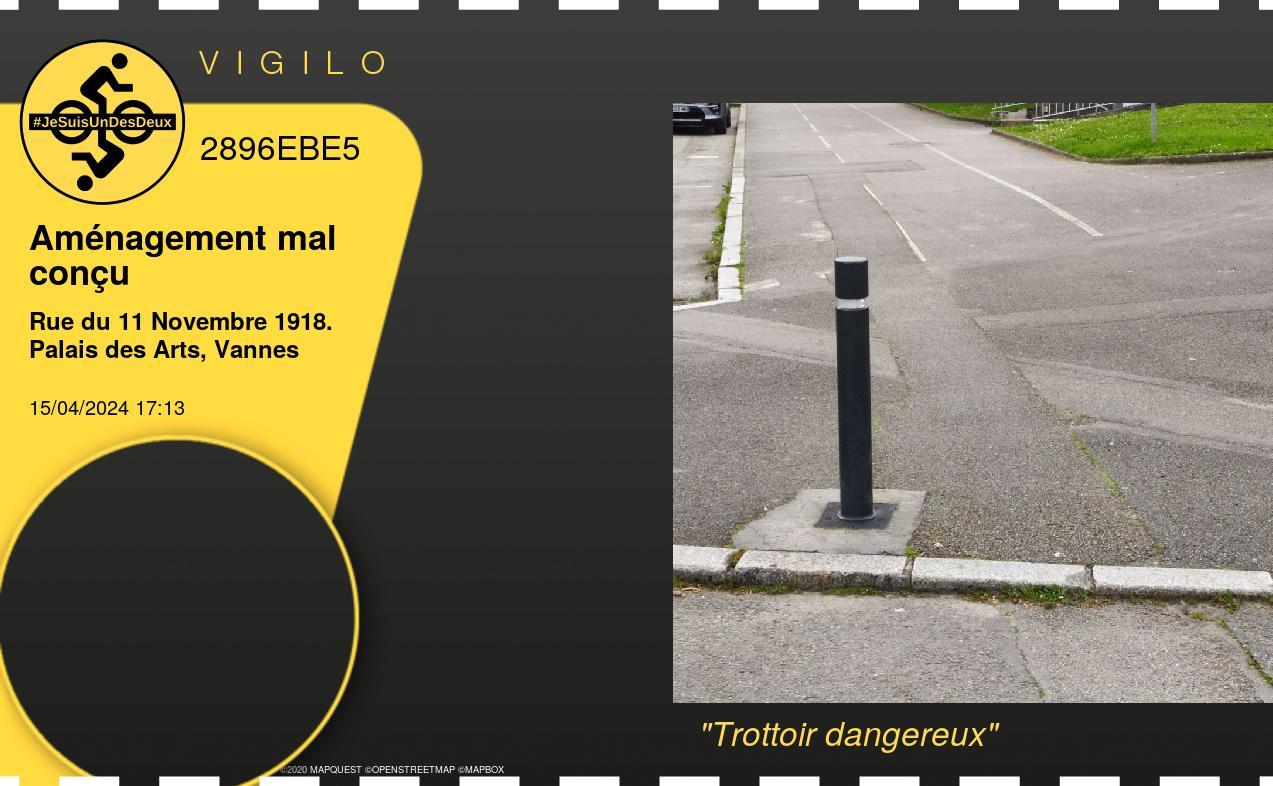 | Rue du 11 Novembre 1918. Palais des Arts, Vannes | Trottoir dangereux | Photo - Observations similaires |