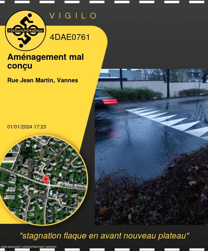 | Rue Jean Martin, Vannes | stagnation flaque en avant nouveau plateau | Photo - Observations similaires |