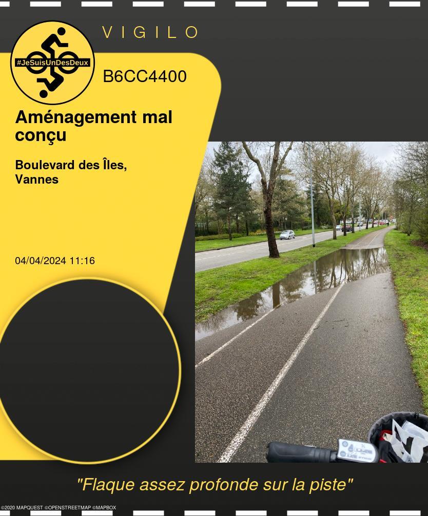 | Boulevard des Îles, Vannes | Flaque assez profonde sur la piste | Photo - Observations similaires |